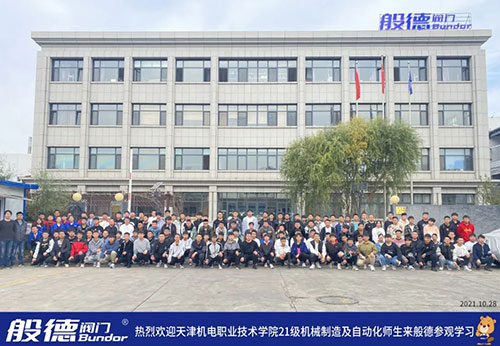 2021年10月28日,天津機(jī)電職業(yè)技術(shù)學(xué)院21級(jí)機(jī)械制造及自動(dòng)化師生共122人,來(lái)到般德閥門(mén)天津工廠參觀學(xué)習(xí)。